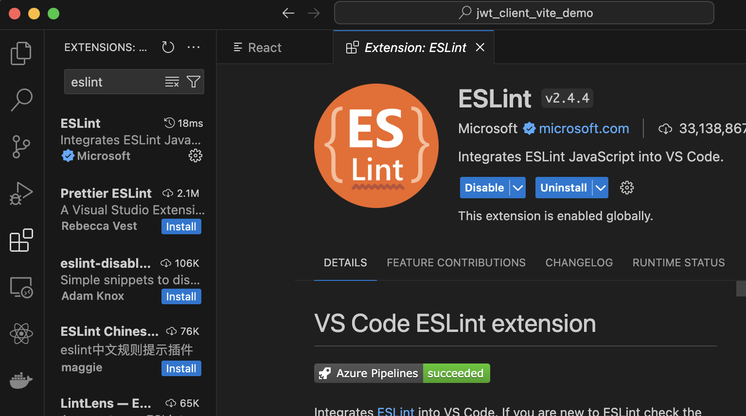 1, 首先打开vscode,插件栏搜索eslint, 选择下图这个下载量最多的,然后install