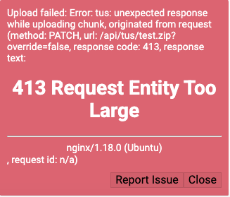 当我从桌面上传一个6MB的文件到FileBrowser的时候,报错了