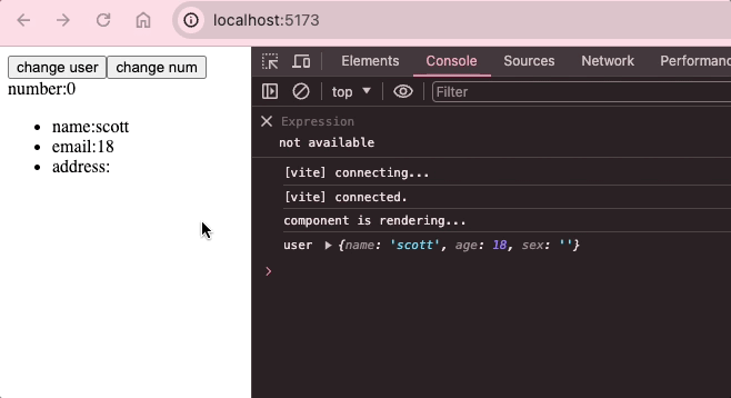 时,由于set的value值没有改变,所以组件就没有重新渲染。user