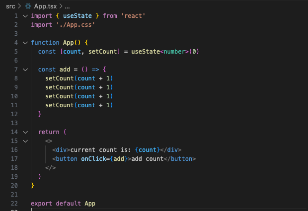 现在我们有这样一个demo,当点击button时,我们期望count以4递增