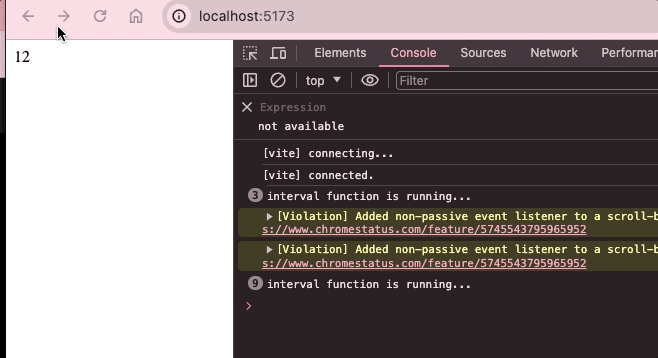 可以看到前几秒输出还正常 越往后页面刷新都感觉有点吃力了 为什么呢?看下控制台的输出 - 异常夸张,它并不是1s打印一次,而是1s 几千次甚至后面数万次